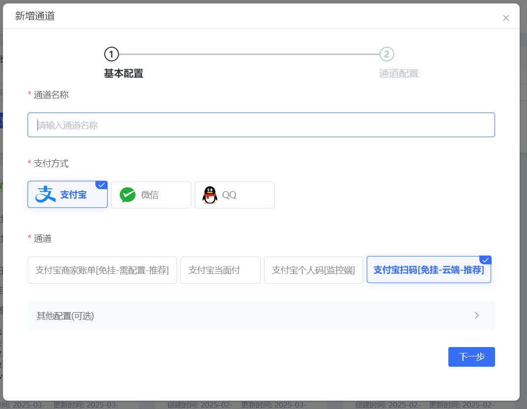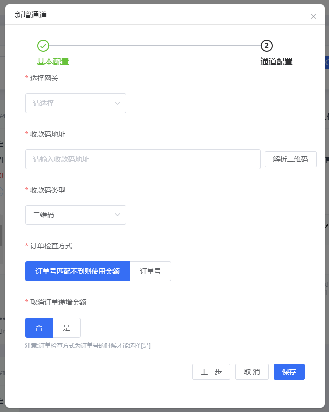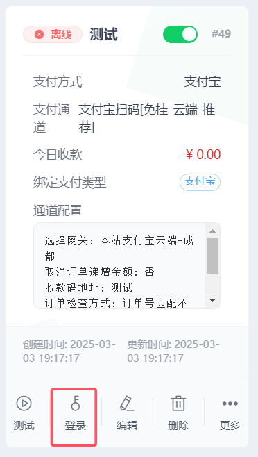 添加收款通道 点击添加