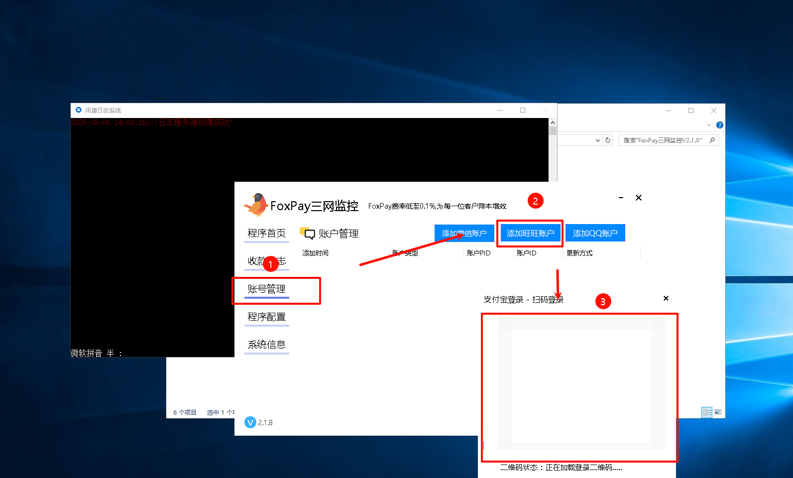 ,等待软件拉起登录二维码,扫码登录,然后查看日志输出信息,等待软件自动获取,成功即添加完成。
